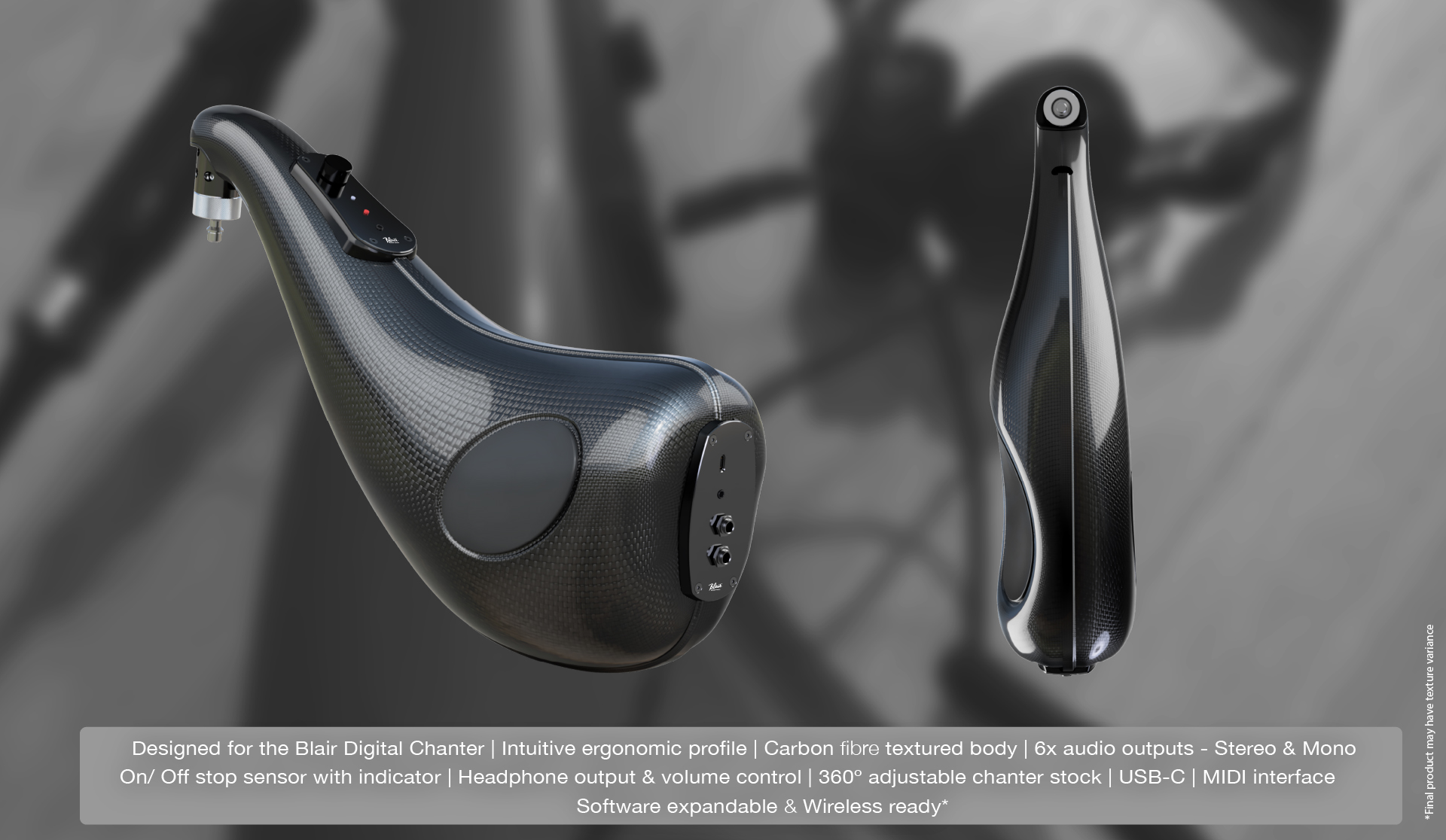 Experience the next generation of digital bagpipes with the Ergo2, a beautifully designed electronic pipe bag with a sleek carbon-fiber texture, multiple professional audio outputs and innovative ergonomic shape for maximum comfort and control. Quite simply, performance ready elegance.
